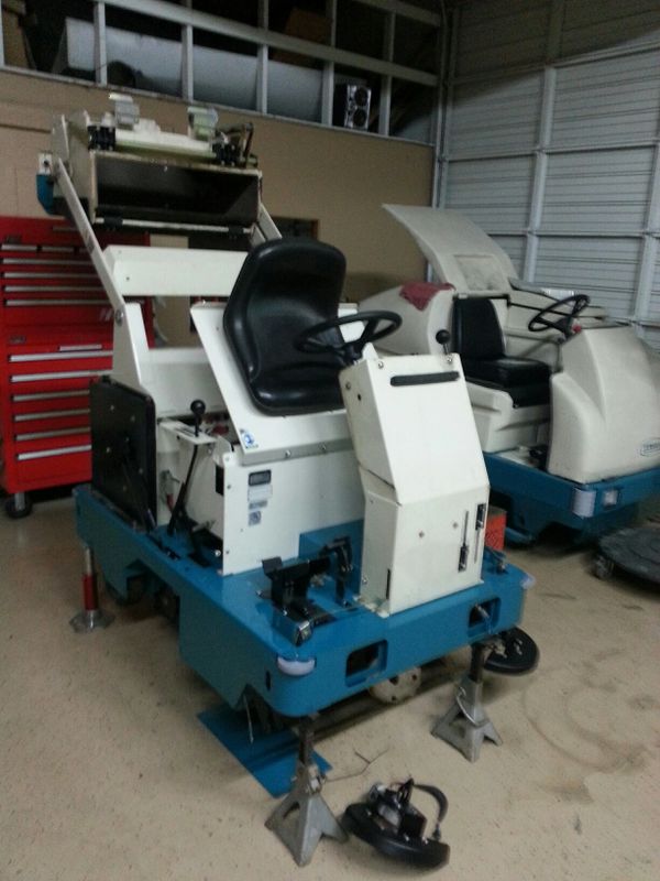 Our reconditioning process goes much further than most companies. On most machines we remove the tanks and body parts, right down to the main frame. We treat any rust or corrosion then prime and repaint with a high quality coating. Engines and hydraulics are pressure tested and check for any leaks. All maintenance "wear parts" are replaced. Electric motors are rebuilt or replaced. All NEW skirts, squeegees, brushes, and batteries are installed. All equipment is inspected by a Tennant Company Certified Master Technician before leaving our facility.